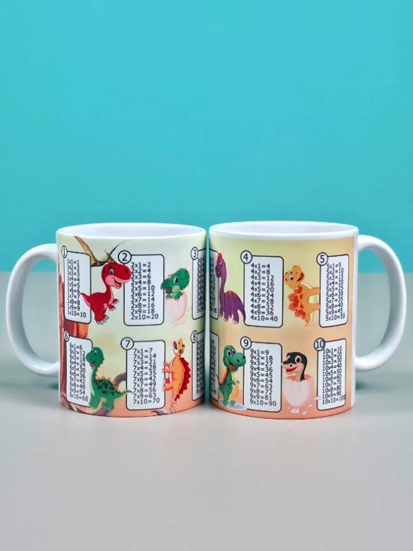 Керамическая кружка с таблицей умножения и забавными динозавриками — это не просто посуда, а полезный образовательный аксессуар для детей и школьников. В комплекте идёт 2 кружки, что делает набор отличным подарком для семьи или друзей. На кружке изображена яркая таблица умножения с милыми динозаврами, которая помогает детям легко и в игровой форме запоминать математику во время завтрака, обеда или ужина.