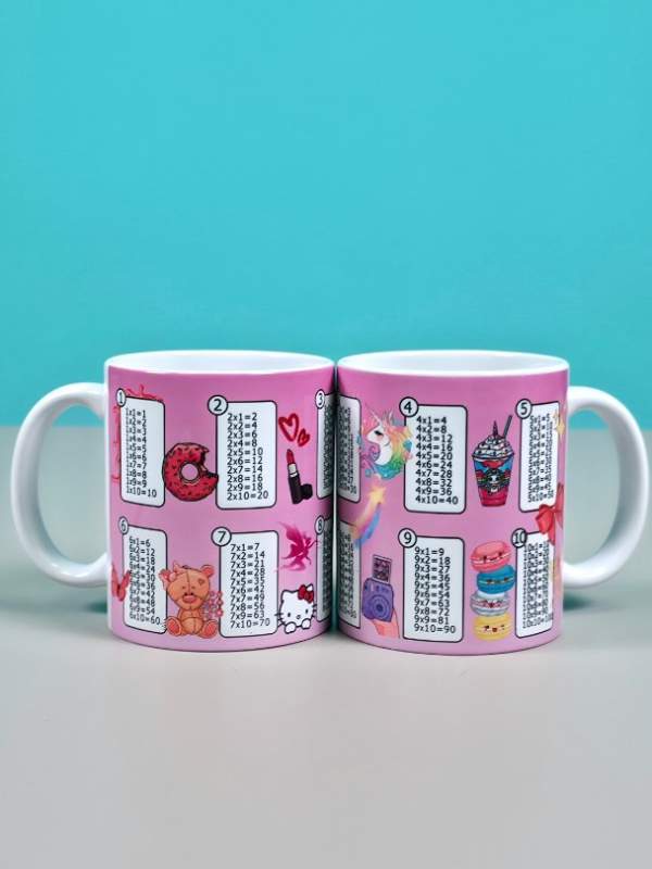 Представляем стильный и практичный набор — 2 керамические кружки с таблицей умножения в нежных розовых оттенках, специально созданные для девочек. Каждая кружка украшена ярким и понятным принтом, который помогает ребёнку легко запоминать и закреплять таблицу умножения в процессе повседневного использования.