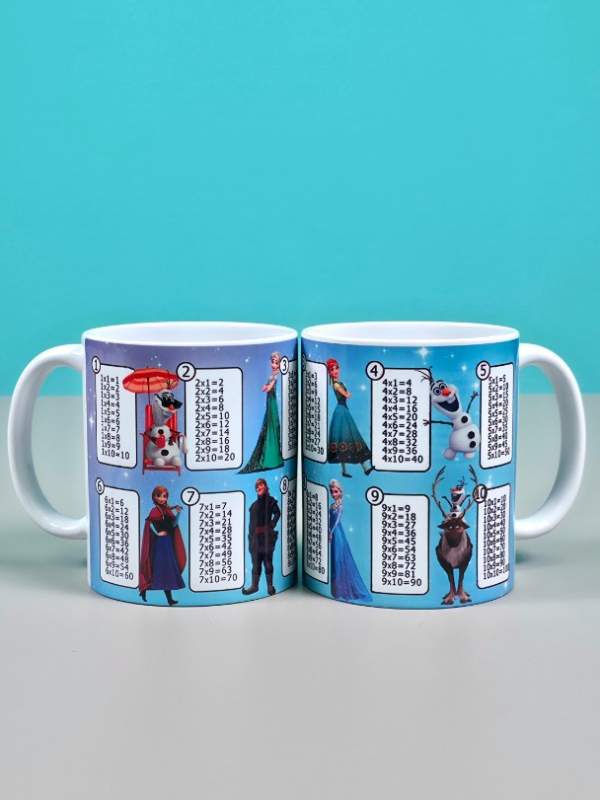 Керамическая кружка с таблицей умножения «Холодное сердце» (набор 2 шт.) – практичный и стильный подарок для детей и родителей, который объединяет пользу, красоту и игровую мотивацию к обучению.