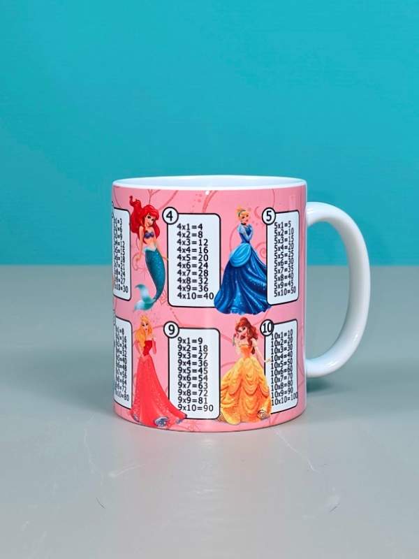 Керамическая кружка с ярким принтом в стиле любимых принцесс — это не только красивая посуда, но и полезный обучающий аксессуар для детей. На кружке изображена таблица умножения в удобном и наглядном формате, что помогает ребенку в игровой форме быстрее запомнить основные математические действия.