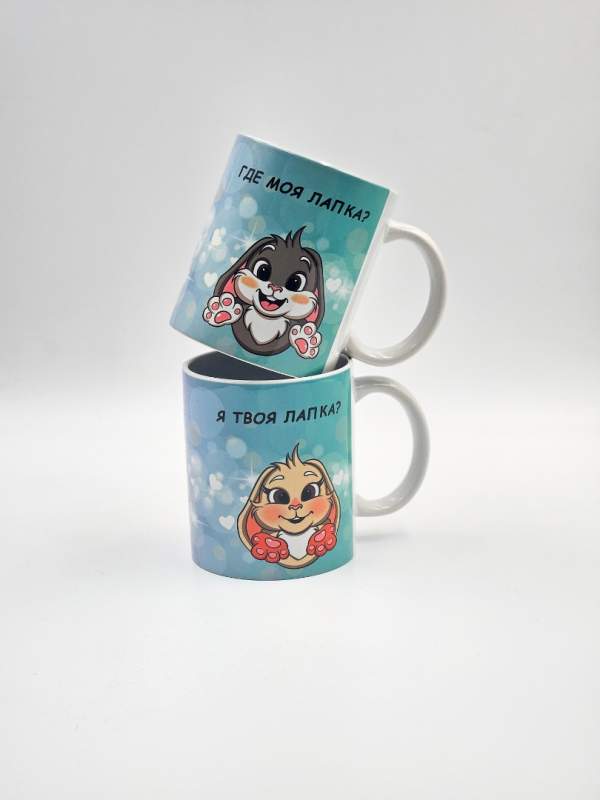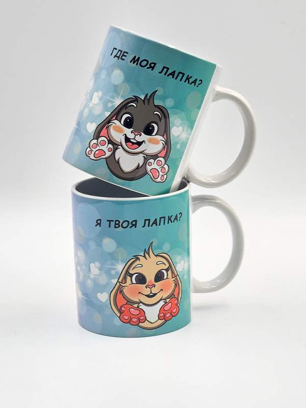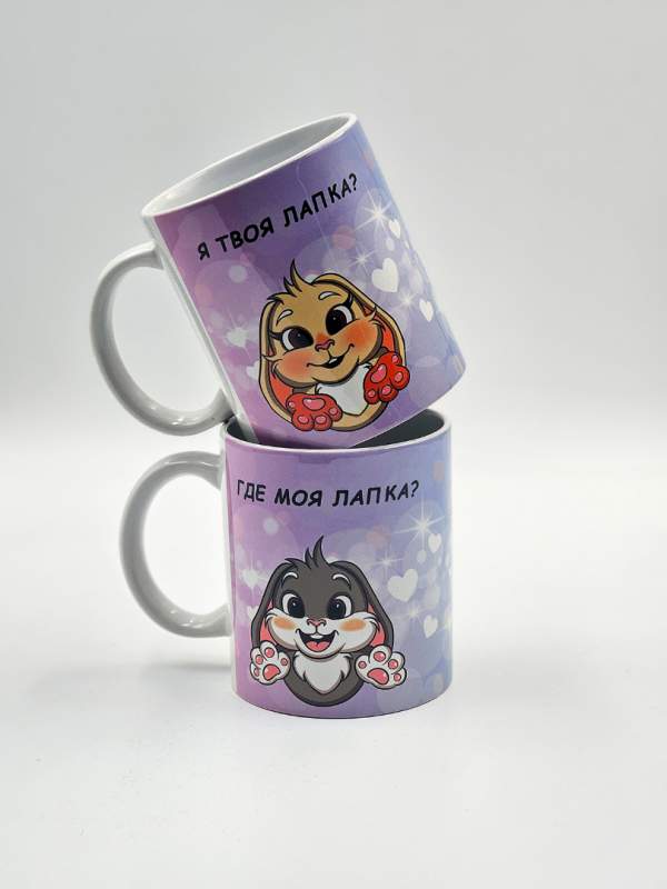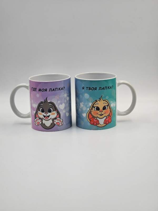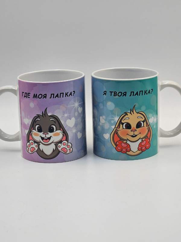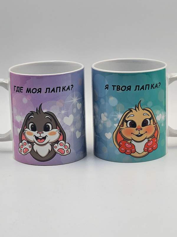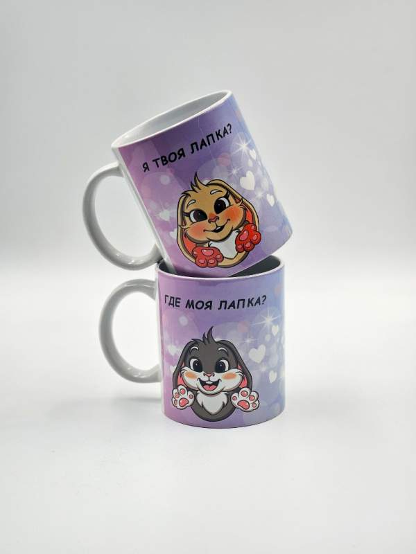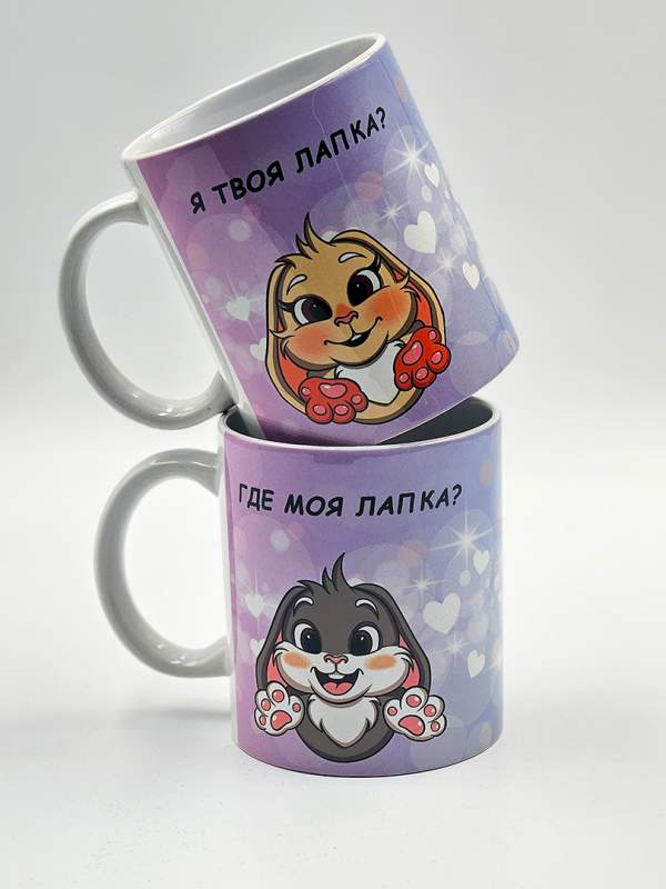 Парные кружки с милыми зайками и надписями «Где моя лапка?» и «Я твоя лапка» — это идеальный подарок для влюблённых пар, который объединяет нежность, заботу и практичность. Каждая кружка оформлена в романтичном стиле: забавные зайки символизируют теплоту отношений, а надписи напоминают о близости и взаимной поддержке.