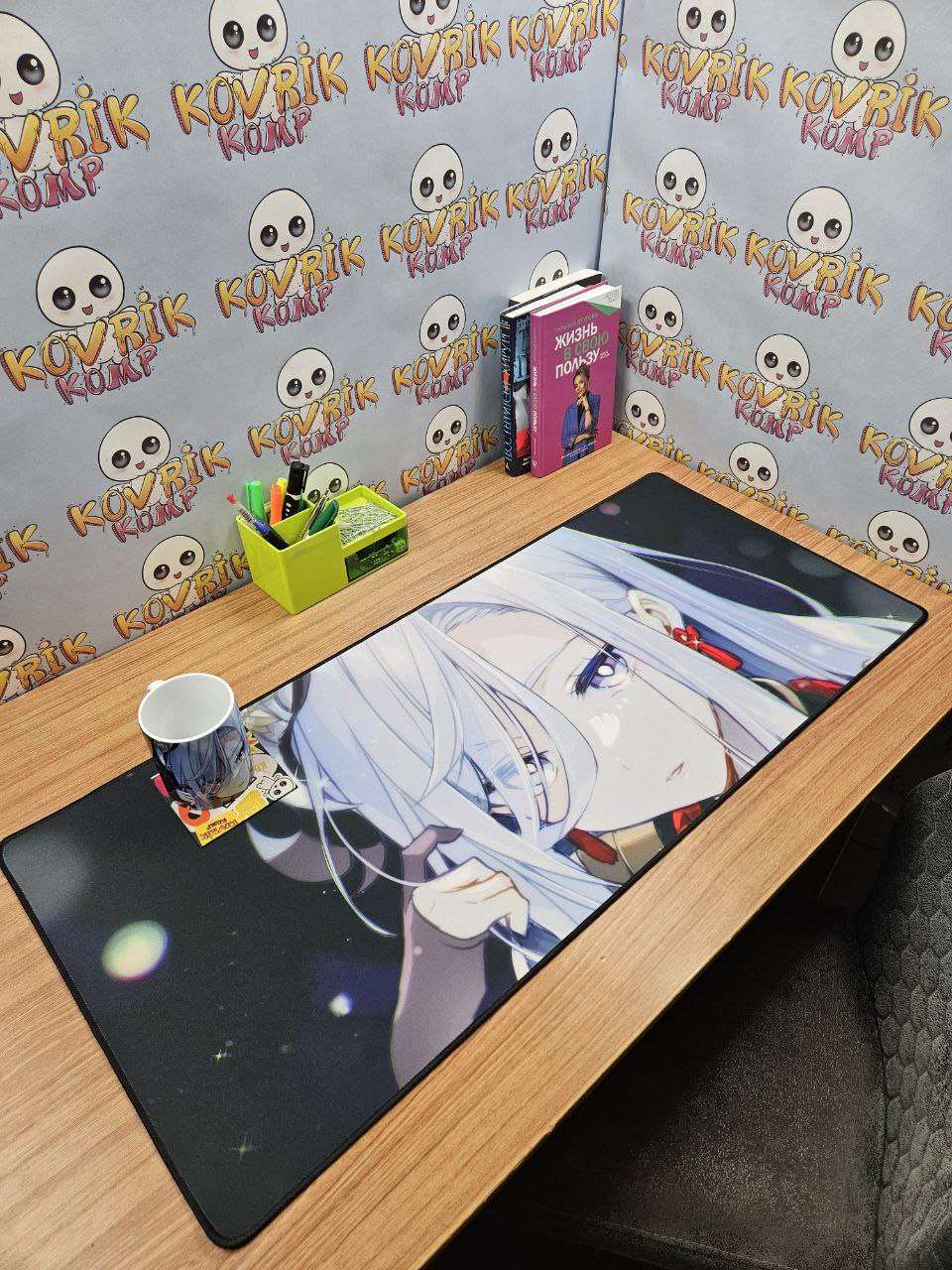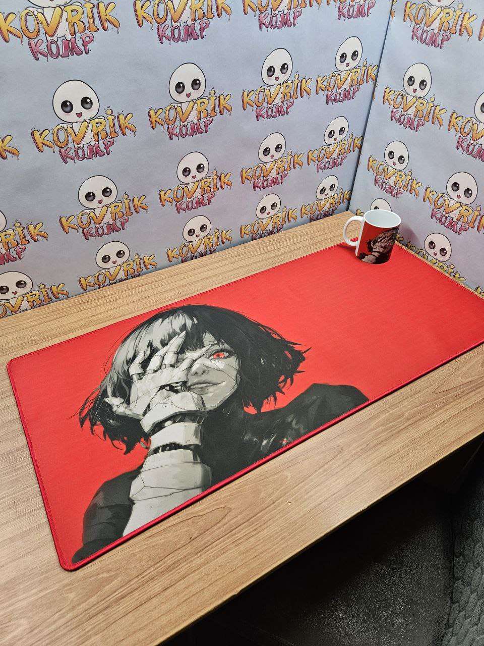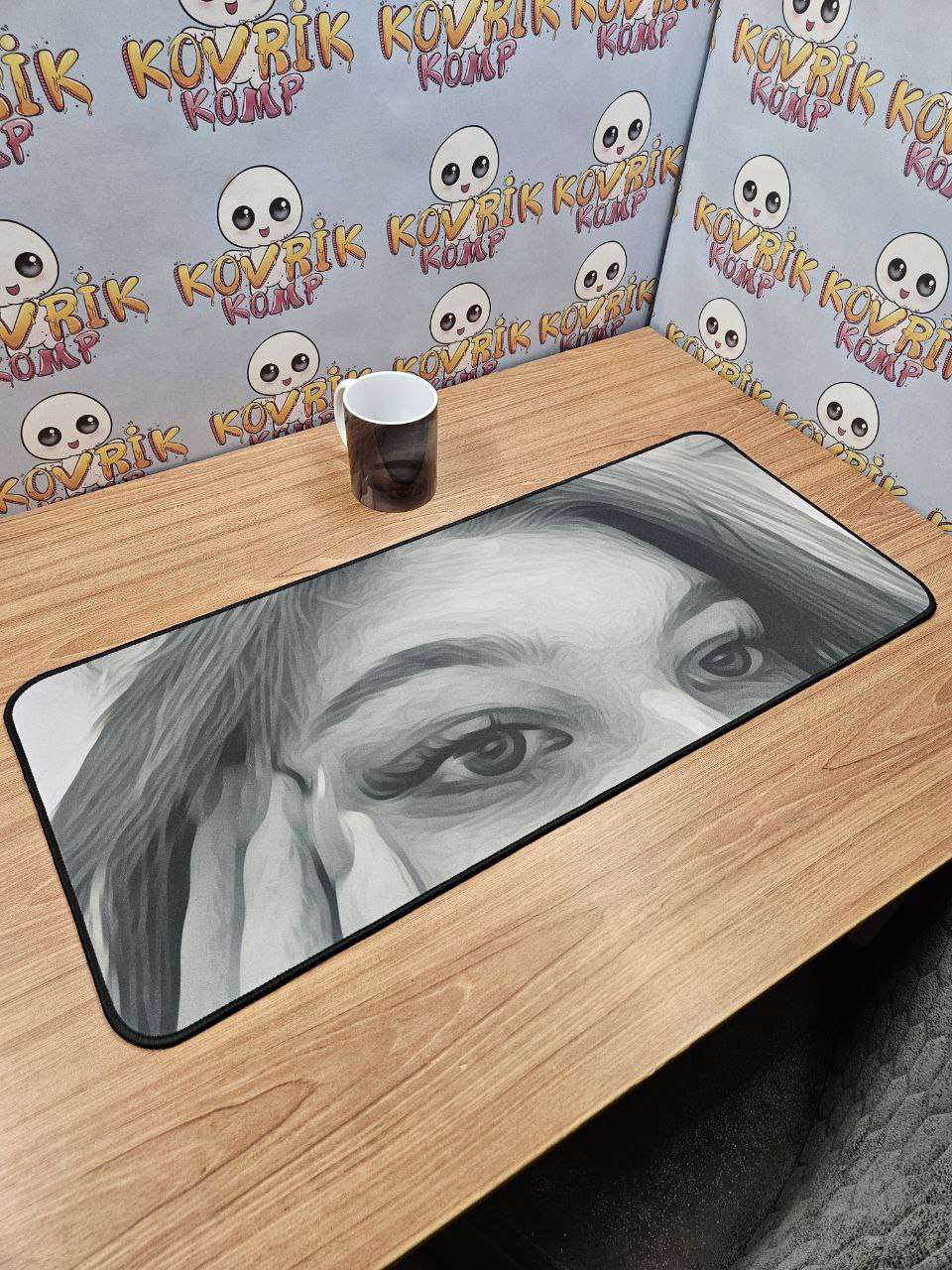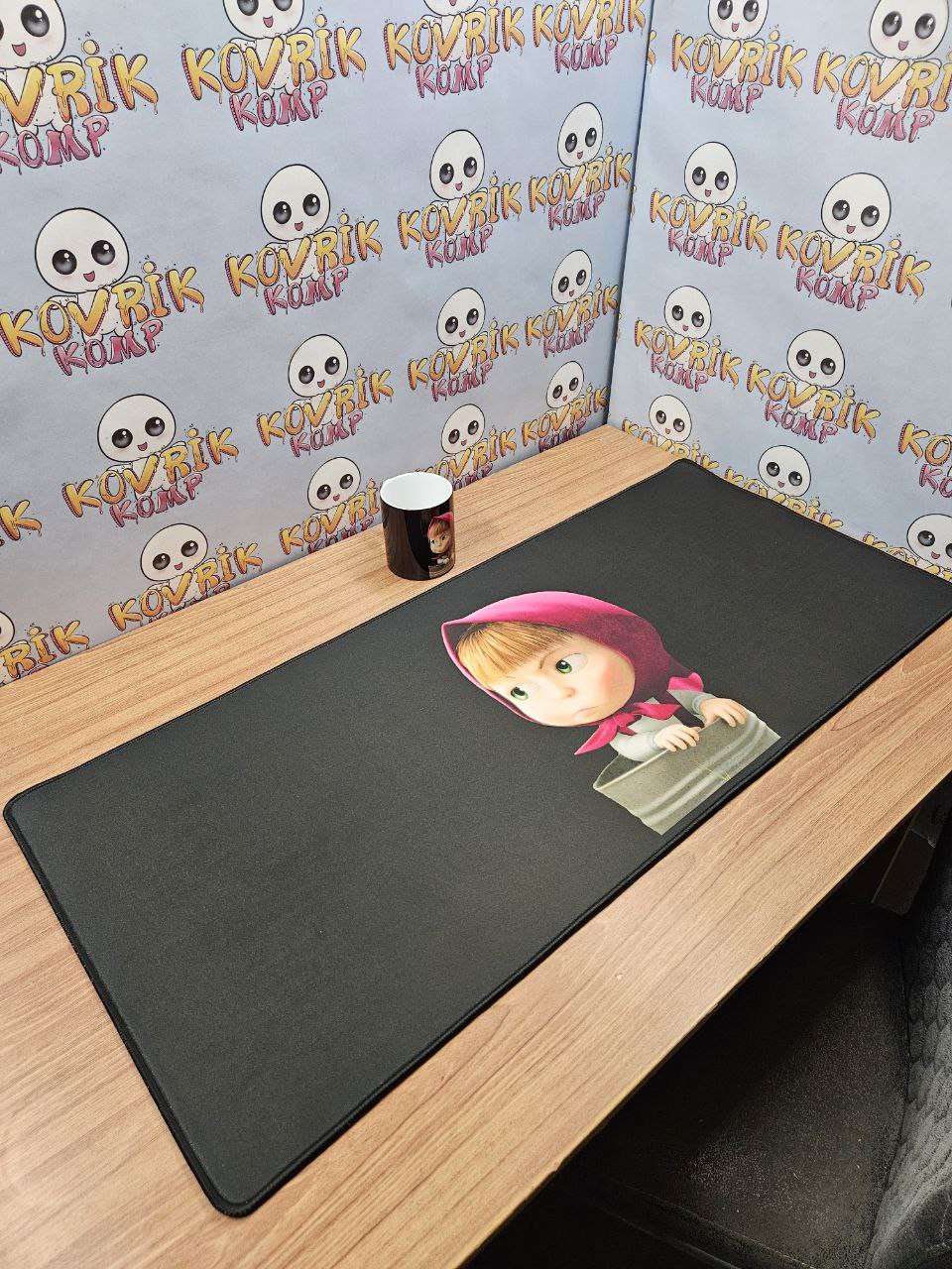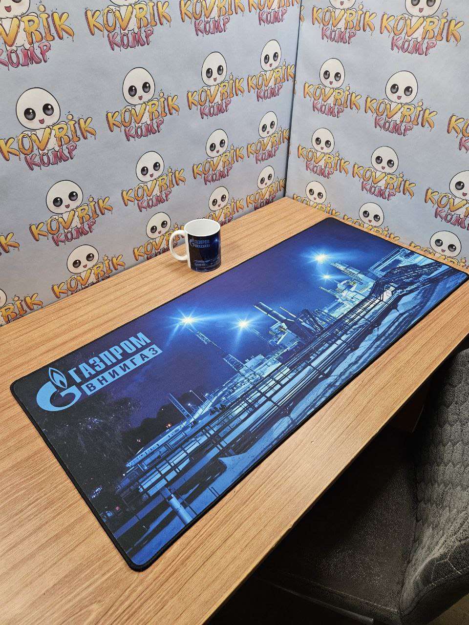 Уникальный коврик для мышки по дизайну заказчика изготовили в размере 900*400*4мм с черной обшивкой . Керамическая кружка в подарок с аналогичным дизайном