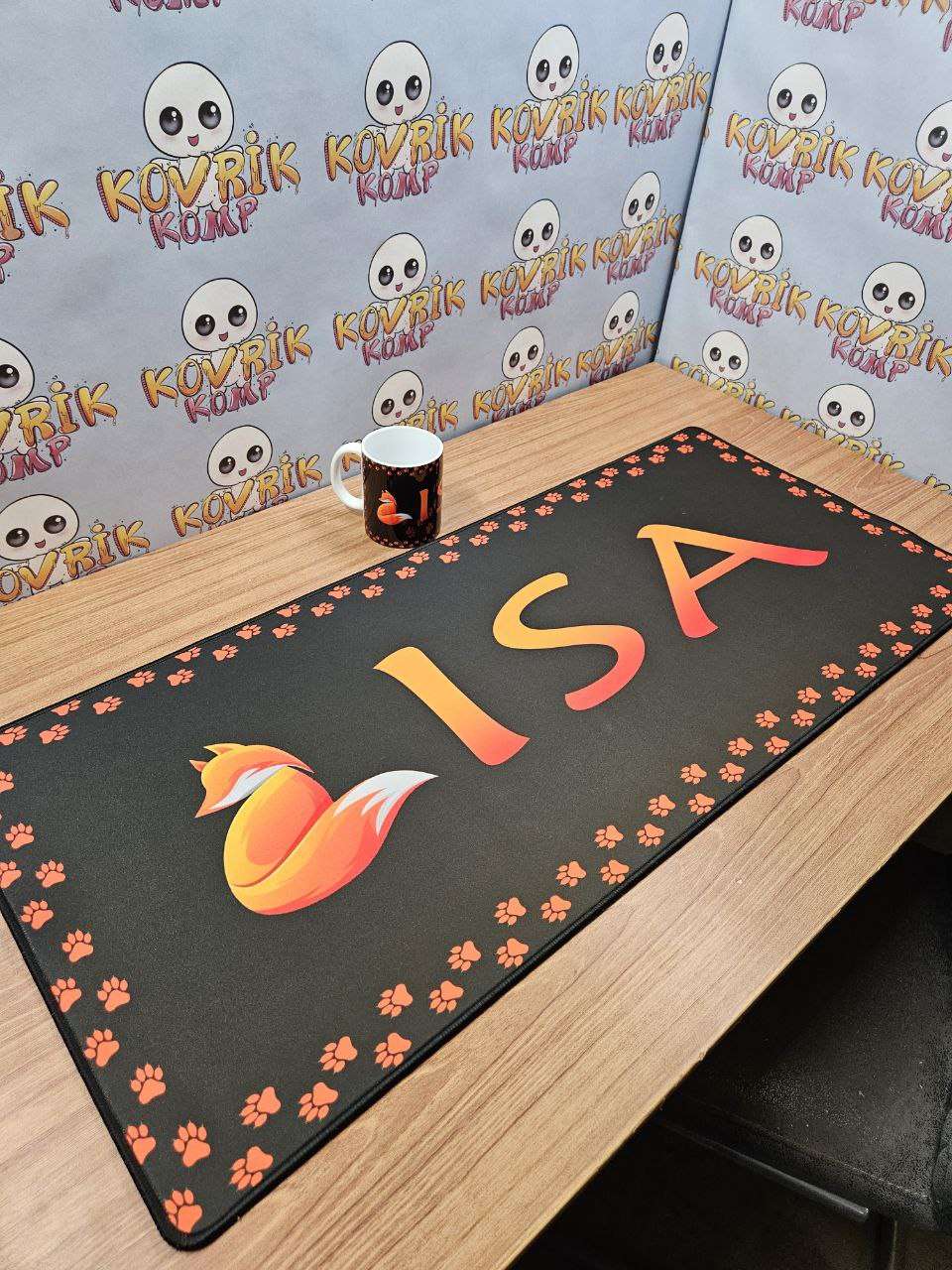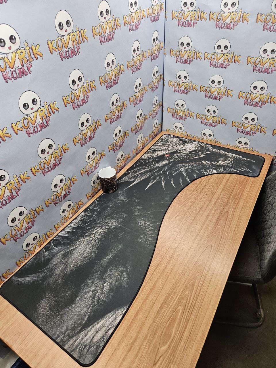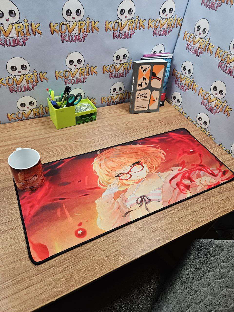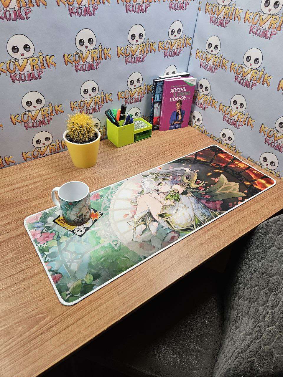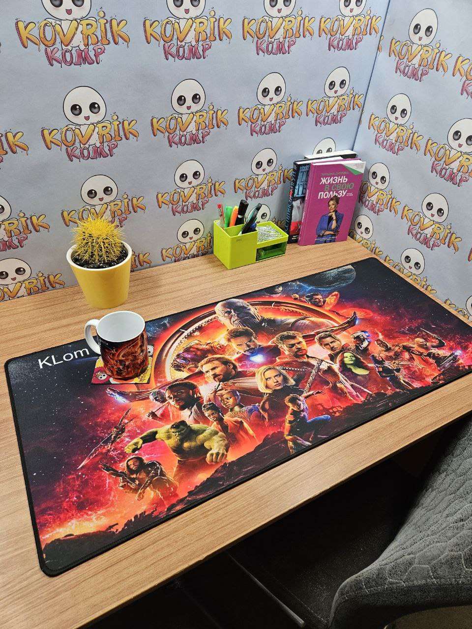 Уникальный коврик для мышки по дизайну заказчика изготовили в размере 900*400*4мм с черной обшивкой . Керамическая кружка в подарок с аналогичным дизайном
