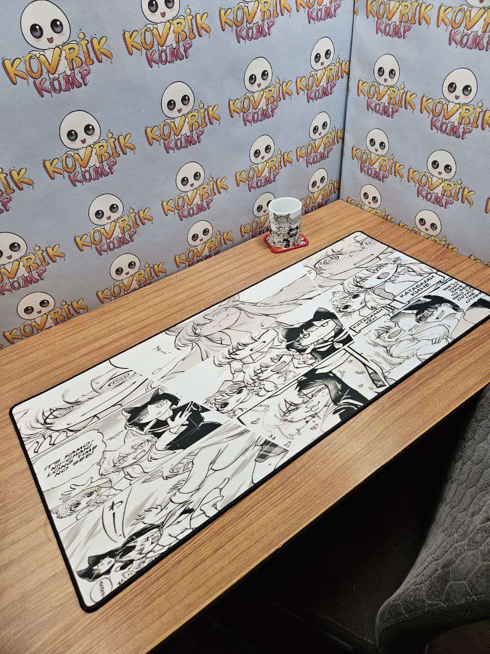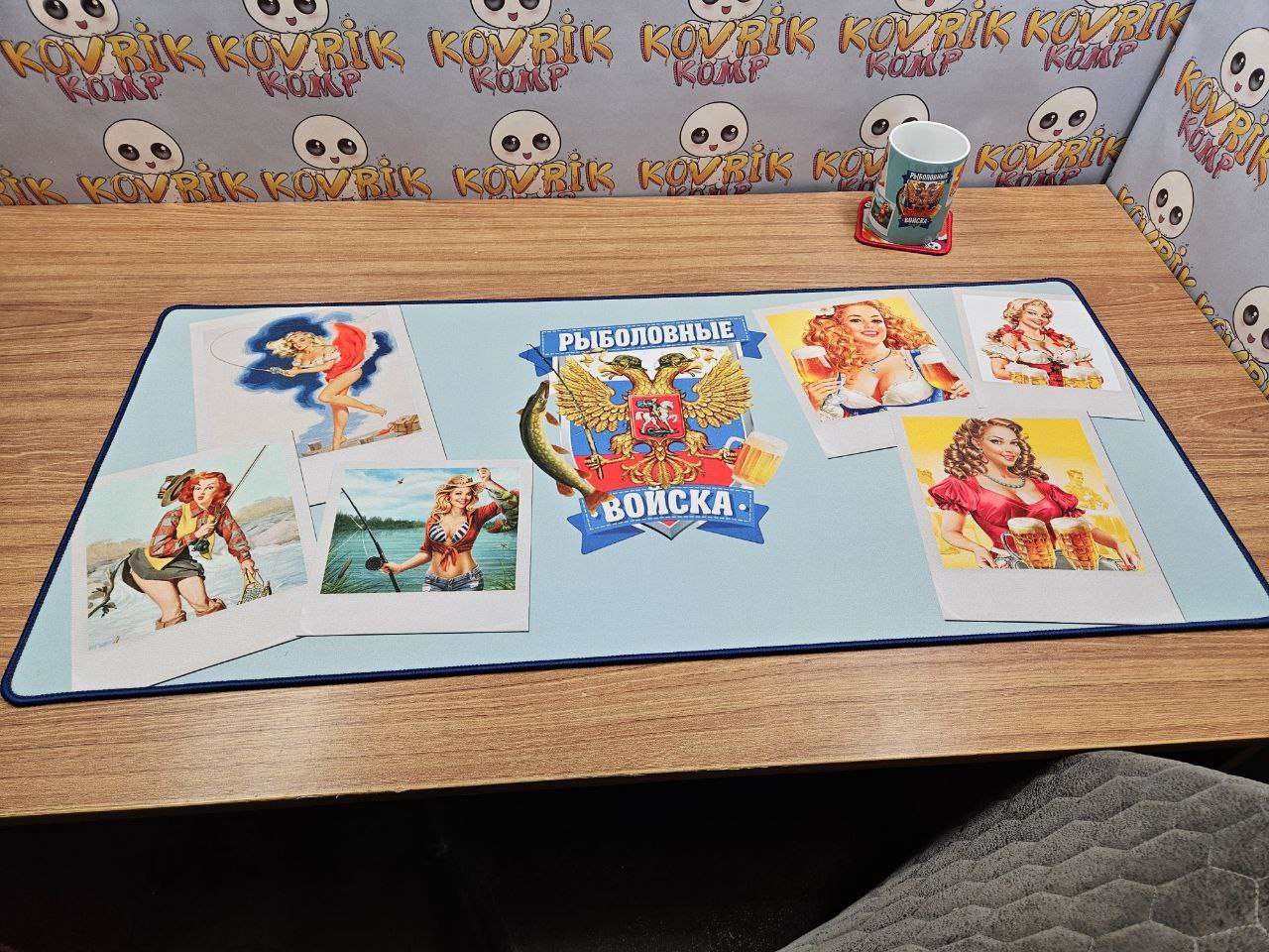 Изготовили не стандартный коврик для мышки 90 на 50 см с продолжением арта на обшивке . Кружка с аналогичным дизайном в подарок.