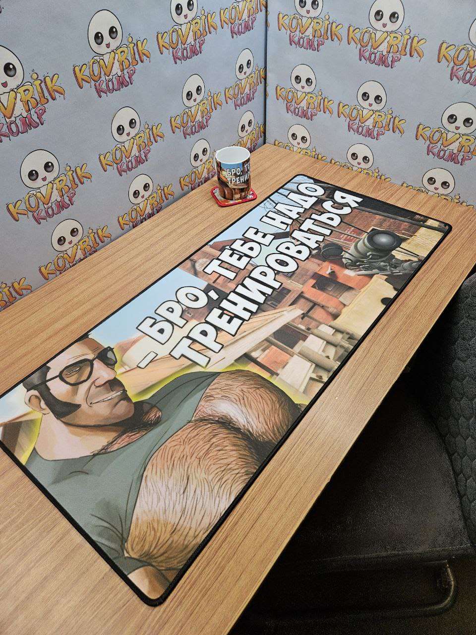 Изготовили коврик для мышки из нашего каталога в размере 90 на 40 см с черной обшивкой. Артикул 0141